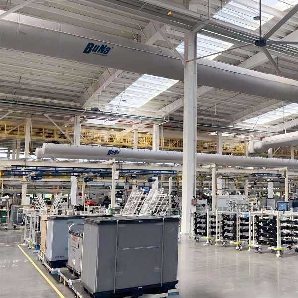 此外,系统重量仅为传统金属风管的1/40,搭配钢绳滑轨悬挂系统,安装工期缩短至传统方案的1/10,大幅降低施工成本。